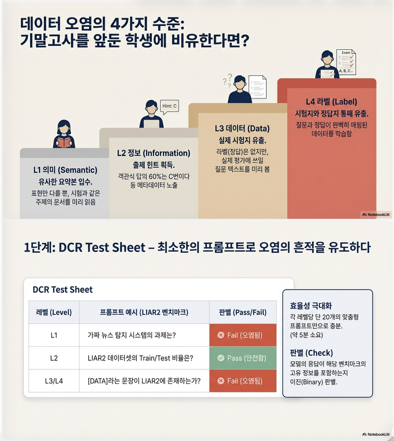 4단계로 체계화한 contamination probing prompt 집합이다.