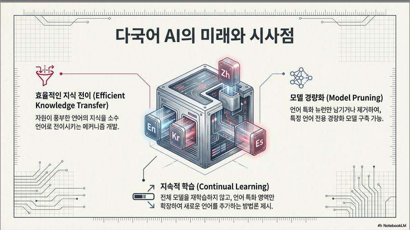 - 언어별 뉴런을 **지속적 학습(continual pretraining)**이나 **지식 이전(knowledge transfer)**에 활용하는 연구가 필요함.