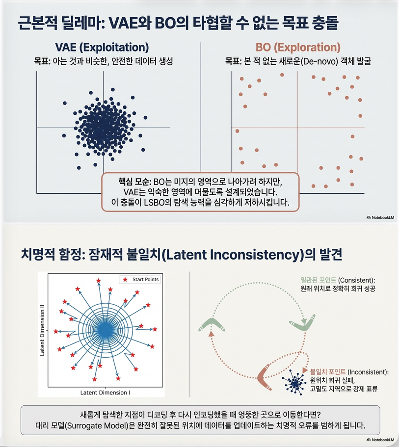 논문의 핵심 contribution은 LSBO의 두 가지 구조적 문제 발견이다.