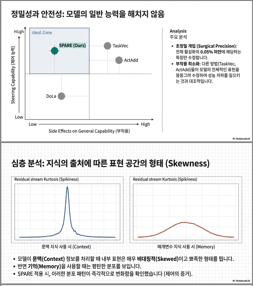 | TaskVec / ActAdd / SEA | 낮음 | 불안정 | dense feature 편집의 한계 |